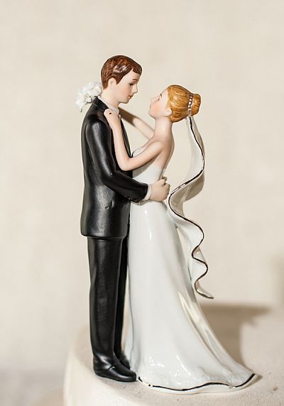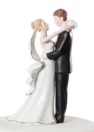 This elegant white and silver fine porcelain wedding couple features the bride carrying a delicate handmade bouquet, and silver trim on her veil and bouquet. A perfect addition for your guest book table, or to crown the top of your wedding cake. Hand painted.